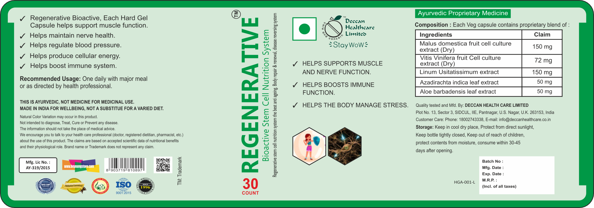 Promotes Cellular Regeneration – Bio-active stem cell nutrition contributes to the regeneration and repair of damaged cells.