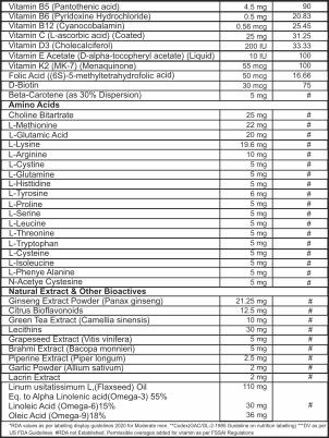 REACTIVE GO ADVANCE from Deccan Healthcare Limited is a daily energy-boosting supplement. It contains 56 active ingredients, including "Essential Fatty Acid," "Essential Natural Extract," "Essential Amino Acid," "Essential Vitamins," and "Essential Minerals." The product is marketed to activate energy, particularly for high-energy activities like High-Intensity Interval Training (HIIT), but also for general daily use. It is positioned as a comprehensive blend of essential nutrients to support energy and performance.